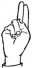 На ћирилици написано БУДИМИР ГЛАВОЊИЋ састоји се из 15 слова [?]. Исписано ћириличном једноручном азбуком за глувонеме: